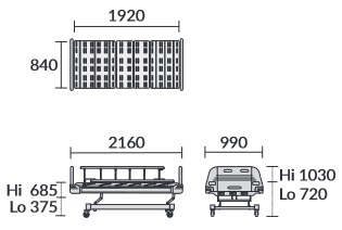 - Dimensi: ± (P)2160 x (L)990 x (T)720 – 1030 mm (keseluruhan). ± (P)1920 x (L)840 x (T)375 – 685 mm (pada dasaran matras).