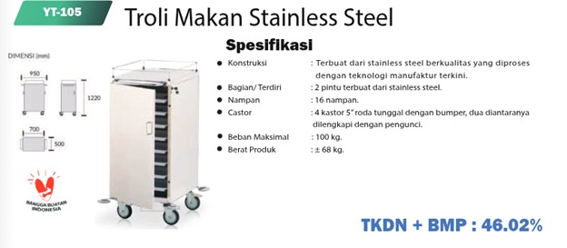 Troli makanan bukan sekadar alat dorong. Ia bagian dari sistem pelayanan yang harus berjalan lancar, cepat, dan steril. Salah satu produk yang banyak digunakan di rumah sakit adalah Troli Makanan Stainless Steel YT-105 dari Yovistra.